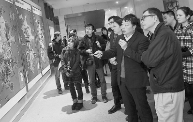 在第六届海峡媒体峰会上,两岸媒体嘉宾一起参观平潭实验区规划馆。(资料图片)