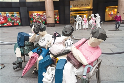 本周,台湾著名艺术家朱铭的《人间系列》四个子系列:《购物》、《宝贝》、《休息》和《裙的故事》,在上海淮海路上展出,给上海街头带来艺术气息。 王冈摄