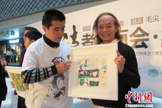 中新网上海12月6日电(记者姜煜)台湾著名漫画家蔡志忠6日在上海正大广场举行新作签售会,他还与爱好绘画的自闭症儿童进行了交流。