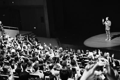 走进繁华热闹的美罗城商场,最引人注目的就是随处可见“上剧场”广告——“赖声川的剧场”“上剧场开幕季”……坐着贴满了“上上上上剧场”招贴的电动滚梯来到商场五楼,会看到巨大的“上剧场”标志;观众入口处的墙上,还有一段赖声川手写的话:“剧场的绝对魅力/在于他的现场性/它的浪漫在于/它是生命/短暂与无常的缩影——赖声川”。走进剧场,所有人几乎都忍不住惊呼一声,因为真的很难想象在一座喧闹的商场里,居然会有一个超过20米的挑高、极具空间感、能容纳699名观众同时看戏的剧场。