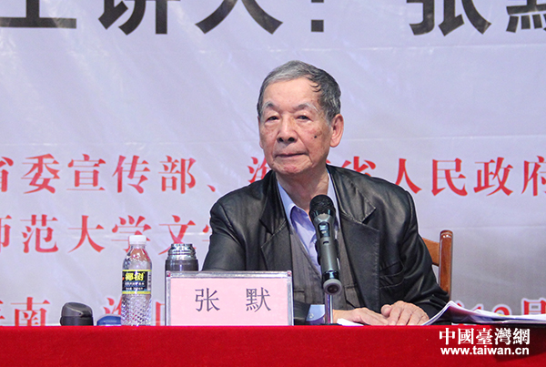 2015年“诗意中国”两岸诗会走进海南师范大学校园,台湾著名诗人张默为该校同学进行了一场关于诗歌创作及书画艺术的讲座。(中国台湾网 普燕 摄)