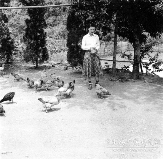 赵一获在喂鸡。这些鸡下的蛋,成为他们山中生活必不可少的“营养品”。
