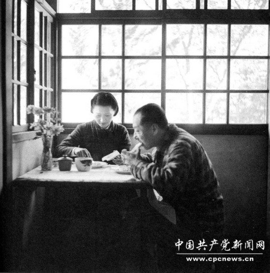 张学良和赵一荻在用居家早餐,面包黄油,鸡蛋是自养的鸡下的。