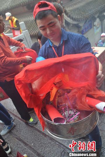 图为妈祖信众恭捧着自己供奉的妈祖像“回娘家”妈祖祖庙进香。 林群华 摄