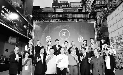 图为中国电影基金会理事长张丕民(前排右三)和两岸电影交流委员会主任委员、导演李行(前排右四)与参展的导演、演员在开幕式上合影。