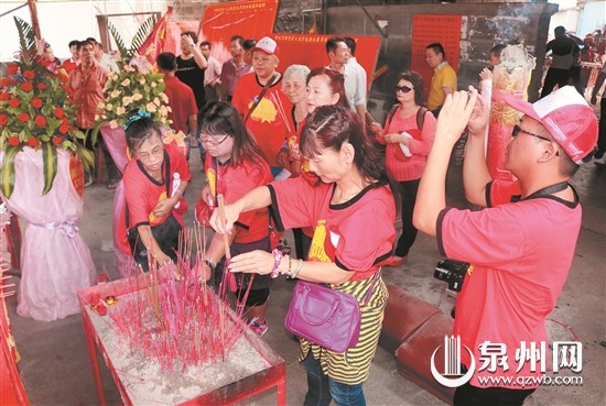 本报讯 (记者吴拏云/文 戴涵琦/图)日前,在石狮市宝盖镇铺锦村黄氏家庙及清晖堂举行的黄氏子孙谒祖进香盛大活动中,出现了几十个台湾面孔。记者在询问后得知,原来他们都是石狮铺锦黄氏派衍至台湾鹿港的黄氏后裔。