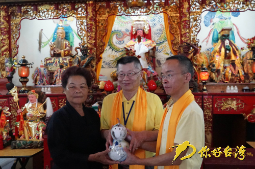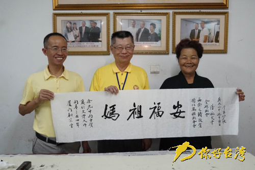陆炳文、谢文清特意向朝宗宫敬献了“‘妈祖福安’德化瓷葫芦猴粥米罐”,这也是“福罐”首次敬献妈祖宫庙。之后,陆炳文还特意为朝宗宫现场书写了“妈祖福安”等佳句的书法。