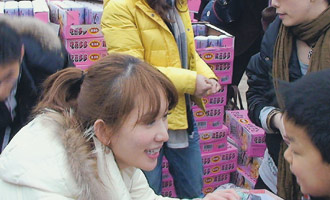 中新网2月23日电 林志玲日前悄悄飞抵四川,实现她去年承诺要为四川受灾群众盖两所学校的心愿,一天当中她跑了北川两个学校,送去大堆食物和棉被,招牌娃娃音吸引小朋友围观,刚开始孩子们始终和她保持一定距离,不敢靠近。