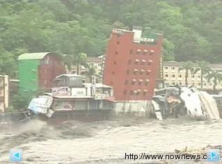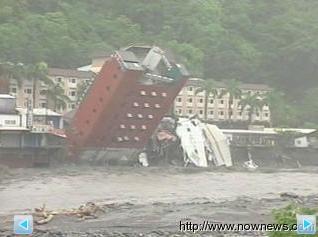台东县下了整夜的大雨,知本温泉区的金帅饭店倾斜。据台媒报道,大雨成灾,台东县知本温泉几成孤岛,联外道路遭冲失一段,由于地基遭掏空,一幢6层楼高的金帅饭店9日近中午时不敌滚滚恶水冲刷倒塌。稍早前,金帅饭店已呈20度倾斜。