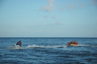 搭乘船艇式海上香蕉船刺激又过瘾。
