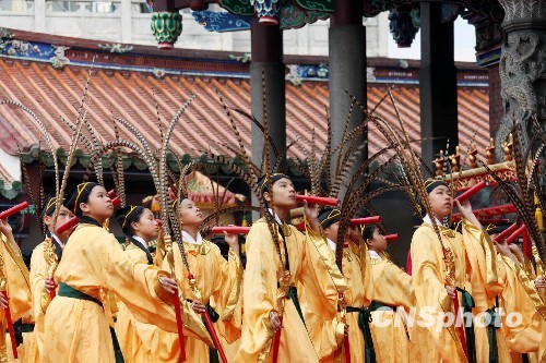 图为多年来担任佾生的台北大龙小学生,以六佾舞行献礼,展现“诚于中,形于外”的姿仪,表达对孔子的尊崇与赞颂。