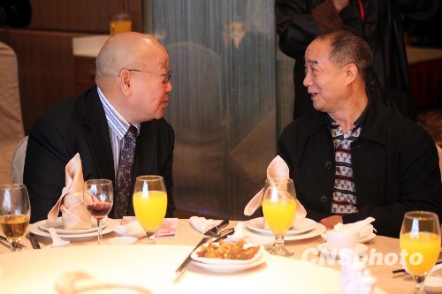 11月10日,首位获得中国戏剧梅花大奖的尚长荣(左)与被誉为“麒派掌门人”的陈少云(右)齐齐现身台北,二人相谈甚欢。他们将与台湾京剧青衣名角赵复芬、台湾“弘梅雅集京昆艺术团”资深名票邹锦梅以及江苏省京剧院演员一同登台,在11月11日台北市中山堂开幕的“海峡两岸京昆艺术联演”上,为台湾戏迷带去一场戏曲饕餮盛宴。中新社发 李佳佳 摄