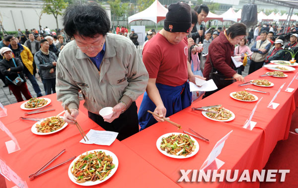 当日,客家美食创意大赛在台北市南港展览馆举行,现场的4000份参赛菜品供500位市民品尝,并通过评委评选和市民投票的方式评选出佳肴奖项。新华社发(吴景腾 摄)