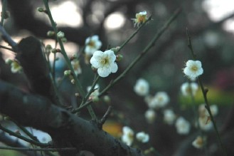 中正纪念堂有梅花,这些年已不是秘密。这个晴朗假日总是聚集人潮的园区,白色围墙内的建筑物围绕着一片绿意,这大片绿意有树木有草花,还包括了冬末春初绽放的樱花,以及隆冬展俏颜的各色梅花。