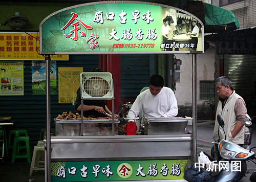 位于屏东县潮州镇三山国王庙庙口的余家烤米肠摊档,已有六十年历史,米肠中放入花生,颇有广东潮汕猪肠包糯米风味。此庙创建于清朝嘉庆九年( 公元1804年),是屏东潮州镇最古老的庙宇,庙内供奉的是广东潮州府揭阳县巾山国王、明山国王、独山国王,庙的右边则供奉土地公与妈祖,这在台湾是极为少见的供奉方式,三山国王系由广东潮州府揭阳县先人随郑成功来台时奉祀而来。(陈立宇)