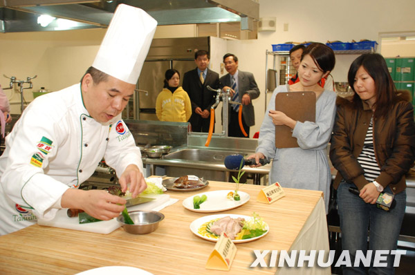 当日,台湾台北县一食品公司推出了年夜饭大餐品尝会暨摆盘教学活动,只要花80元新台币,即可尝到20道年夜饭大餐,并能在现场跟名厨学摆盘。新华社发