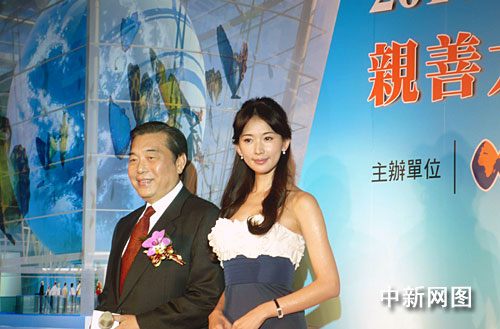 1月28日,2010年上海世博会台湾馆亲善大使暨天灯祈福语发表记者会举行。图为台北世贸中心董事长王志刚(左一),台湾馆代言人林志玲。陈立宇 摄