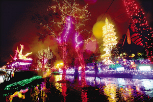 昨晚,南京白鹭洲公园内各种彩灯全部绽放,进行最后的试灯,在夜幕下散发出迷人的光彩。台湾的“凤凰”花灯(图左侧灯组)安装在公园内的印月桥上,与周围的灯组遥相辉映,营造出一片节日的氛围。宋峤 摄
