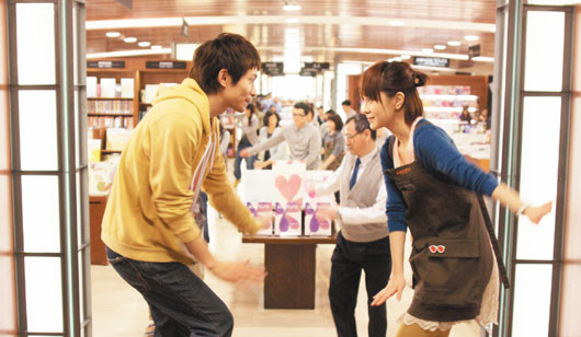 《一页台北》把台北诚品书店带进剧中,男女主角姚淳耀(左)、郭采洁的交会、碰撞在此展开。图/原子映象提供