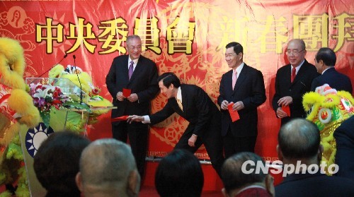 2月22日,中国国民党中央委员新春团拜会在中央党部十二楼举行。图为国民党主席马英九(左四)率党的高层出席团拜会。中新社发 耿军 摄