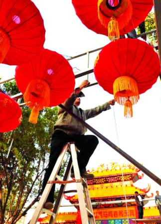 在4.8万平方米的两马元宵灯区,依顺时针分为民俗风情、和谐海峡、盛世中华、欢乐新年四个主灯区。记者看到,最先点亮的是马祖主题灯区和灯区门口的民俗灯组“亲家舅送灯”。