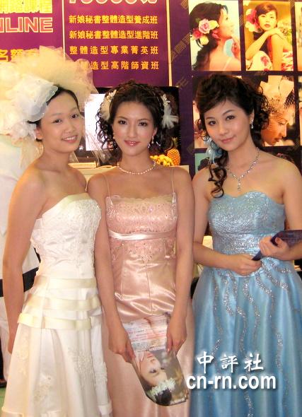 彩妆业者模特儿站台宣传。(中评社邹巧韵摄)