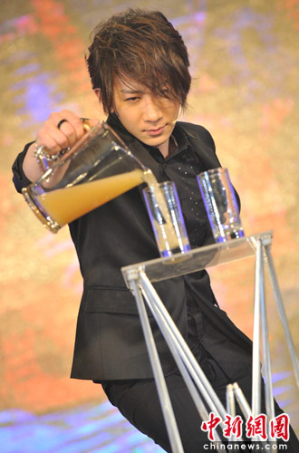 4月25日,由《时尚芭莎》杂志社主办的第8届“BAZAAR明星慈善夜”活动在上海举行,图为刘谦为现场嘉宾表演精彩炫目的魔术。 中新网记者 金硕 摄