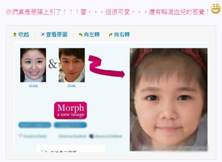 看到合成baby照,林心如直呼:“有趣!”并转贴在自己的博客上,同戏的演员胡杏儿看到也留言说很可爱。陈键锋也说:“很可爱,有点儿混血儿的感觉!”而网友也戏称合成Baby照很有明星脸,酷似Ella、川岛末树代和汤姆克鲁斯的女儿Suri。
