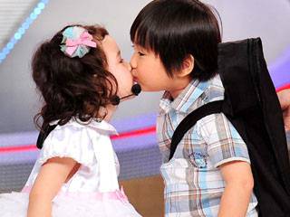小小彬与混血女孩接吻,可爱指数破表。图片来源:台湾“今日新闻网”