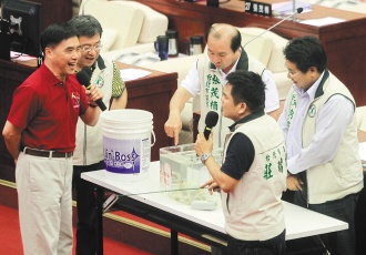 蓝营议员秦俪舫等人则拿出章鱼玩偶,讽刺绿营不是“章鱼哥”而是“乌贼弟”,只会一天到晚吐墨汁、抹黑市政成果。