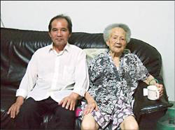 “妈妈,您今天气色很好!”每个星期一,81岁、从铁路局退休的老大陈熙台,早上8点进门先向母亲请安,母子俩一整天如影随形。吃饭的时候,儿子帮妈妈夹菜、喂食;儿子会主动聊起童年往事,陪老妈看她最爱的歌仔戏;坐久了儿子搀扶母亲在附近农路散散步,晚间10点看着妈妈就寝,儿子才放心离去。