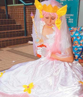 男生“斗天使”说,他中学时就喜爱“美少女战士”,但当时没cosplay文化,想都没想过能扮成喜爱角色;听说cosplay后,他从变身系美少女开始,一直扮到神职系(巫女、修女等),这次则选择扮演“结婚桃子”。