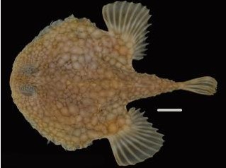 “中研院”生物多样性研究中心博士后研究员何宣庆与2位美国学者发现的2个新鱼物种之一“中间副棘茄鱼”。