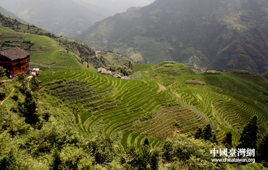 中国台湾网8月21日桂林消息 位于广西龙胜各族自治县的龙脊山,因拥有妩媚潇洒曲线的梯田而闻名于世。登上龙脊山,参加“情系八桂——两岸文化联谊行”的两岸嘉宾在欣赏佳禾吐翠,绿浪排排的美景同时,也不由得感叹这里世世代代瑶族人民的智慧与勤劳。