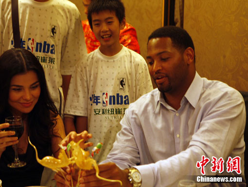 8月24日晚,来自台湾、内地的24名少年NBA团员在北京共同欣赏中国著名的民间工艺吹糖人和捏制面人,并亲手制作这些工艺品,孩子们将中国民间工艺品赠送给NBA球星。中新社记者 任海霞 摄