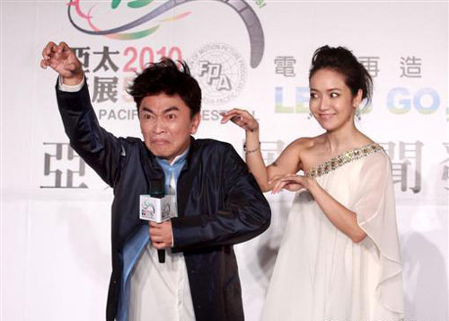 亚太影展颁奖典礼主持人吴宗宪、侯佩岑亮相,两人一上台就开始搞笑。 图片来源:台湾“今日新闻网”