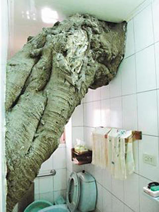 其中一棵从许家厨房贴壁而长,穿过墙壁延伸到隔壁浴室。图片来源:台湾《联合报》
