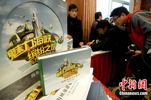 1月18日,海峡旅游景区通票在福州首发。这款主要面向自驾游客群体,提供各种附加优惠的旅游通票,将福建、广东、浙江、江西、湖南、广西和台湾金门、马祖等6省2地区的422个精华景区整体打包。中新社记者 王东明 摄