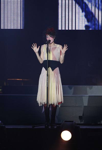 王菲台北小巨蛋演唱会斥资新台币1.5亿元打造舞台,炫丽的雷射、人造雪花、四季变化等特效让人大饱眼福。(中国台湾网 冯存健)
