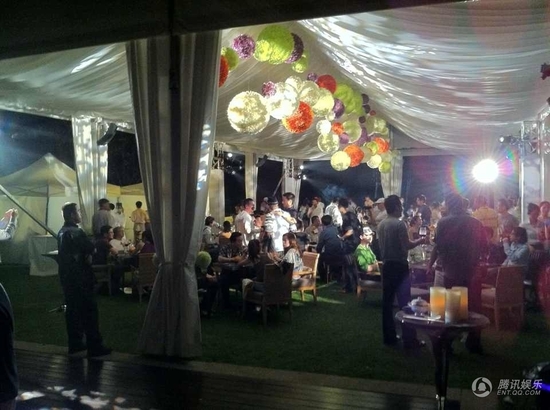 晚上八点左右,随着北京包机团抵达逸林酒店,参加大S和汪小菲婚礼的嘉宾大部分已经到齐。稍事休息后,便来到酒店的户外场地参加欢迎Party。Party现场早已布置好,白色幔帐搭配五颜六色的彩灯,十分唯美华丽。