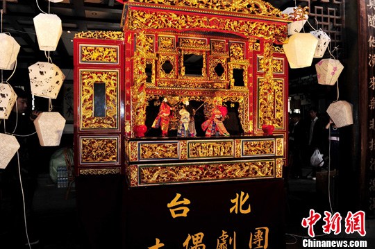 为期5天的“两岸同根 致力为公”川台大型文化交流活动于4月12日在成都启动。图为精彩的布袋戏三国演义表演。中新社发 安源 摄