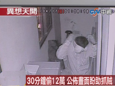 发现被闯空门后,业者为之气结,看到他拿胸罩套头,更是觉得恶心,现在向媒体公布监视器画面,以求早日破案。(中国台湾网 冯存健)