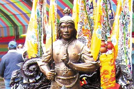 新竹县宝山乡九龙宫供奉穿古代军装的蒋介石,信徒还不少。图片来源:台湾中国时报 陈权欣 摄