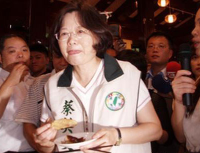 据台湾今日新闻网报道,民进党2012参选人蔡英文9日参观“茶推广中心”,品尝当地铁观音烹煮的菜肴,还不顾形象地大口啃鸡翅。她自嘲,“我最近胃口很好!”一路吃吃喝喝,快乐地选举。
