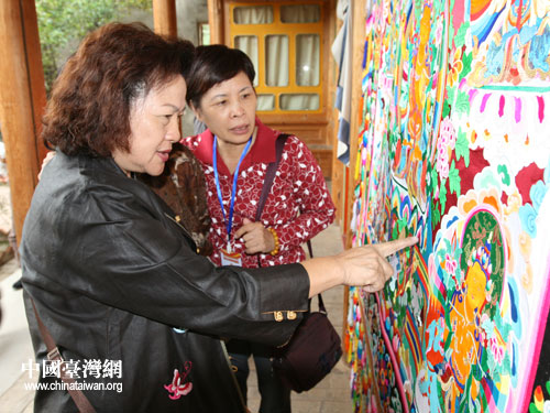 当地美仑美奂的热贡艺术文化不仅是青海高原特色文化的重要组成部分,更是中华民族优秀文化遗产中的一朵奇葩。台湾少数民族代表先后前往当地热贡艺人之家、堆绣之乡、热贡艺术馆、热贡画院欣赏了由藏族热贡艺术大师制作的唐卡、泥塑、堆绣、沙盘画等作品。这些充满藏族特色、内涵丰富、制作精细的热贡艺术精品让台湾少数民族代表叹为观止。高雄团团长谢垂耀表示,热贡艺术是藏民族勤劳与智慧的结晶,是一项伟大的艺术成就,其将佛教典故以唐卡、壁画、堆绣的形式表现出来,将抽象的佛教典故具体化、艺术化,非常有特色。精美的热贡艺术品不仅体现了藏族艺术家的高超技艺,其少则几月多则几年的创作时间和繁多的制作工序,更凝结了艺术大师的辛勤与汗水,折射着藏族吃苦耐劳、坚忍不拔的性格。特别是唐卡等以矿物质材料制作的热贡艺术品,经得起岁月的考验,就如同热贡艺术馆那幅世界上最大的沙盘画一样,未来一定会成为伟大的艺术精品。花莲团团长陈凯莉女士表示,因热贡艺术作品内容多是藏传佛教典故及人物,充满了宗教的灵气,内容丰富,工艺精湛,色彩亮丽,令人惊叹,是世界性的艺术极品。