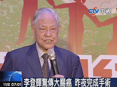 李登辉惊传大肠癌,1日开刀过程顺利,2日医院对外说明病情。