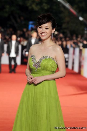 曾宝仪湖绿色礼服大秀事业线。
