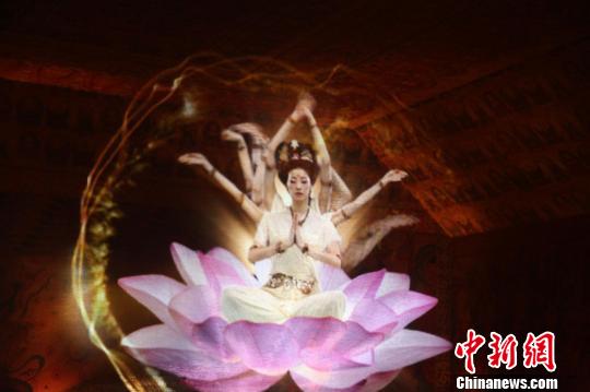 图为3D剧场滚动播放由台湾女演员演绎的千手观音。董会峰摄