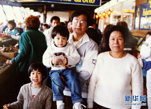这是1989年,少儿时的林书豪(左二)在美国与家人一起合影的资料照片。 新华社/路透