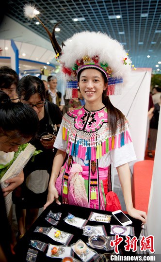 参展台湾同胞身着台东原住民服饰笑迎观众。李一芳 摄